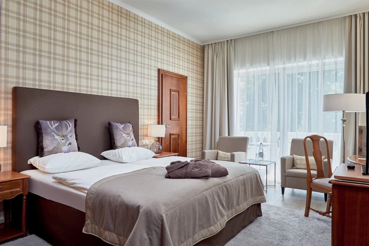 37 do 45 m² - pokój z łóżkiem małżeńskim i możliwością dodatkowych 2 dostawek, łazienka z prysznicem lub wanną, balkon; maksymalne obłożenie pokoju to 3 osoby dorosłe i 1 dziecko do nieukończonych 15 lat