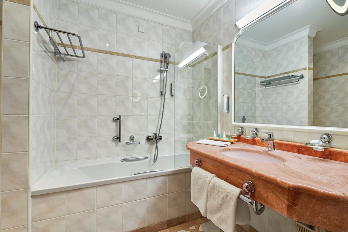 TV sat., telefon, radio, suszarka do włosów, sejf, wi-fi, minibar*, szlafroki* i kapcie do wellness