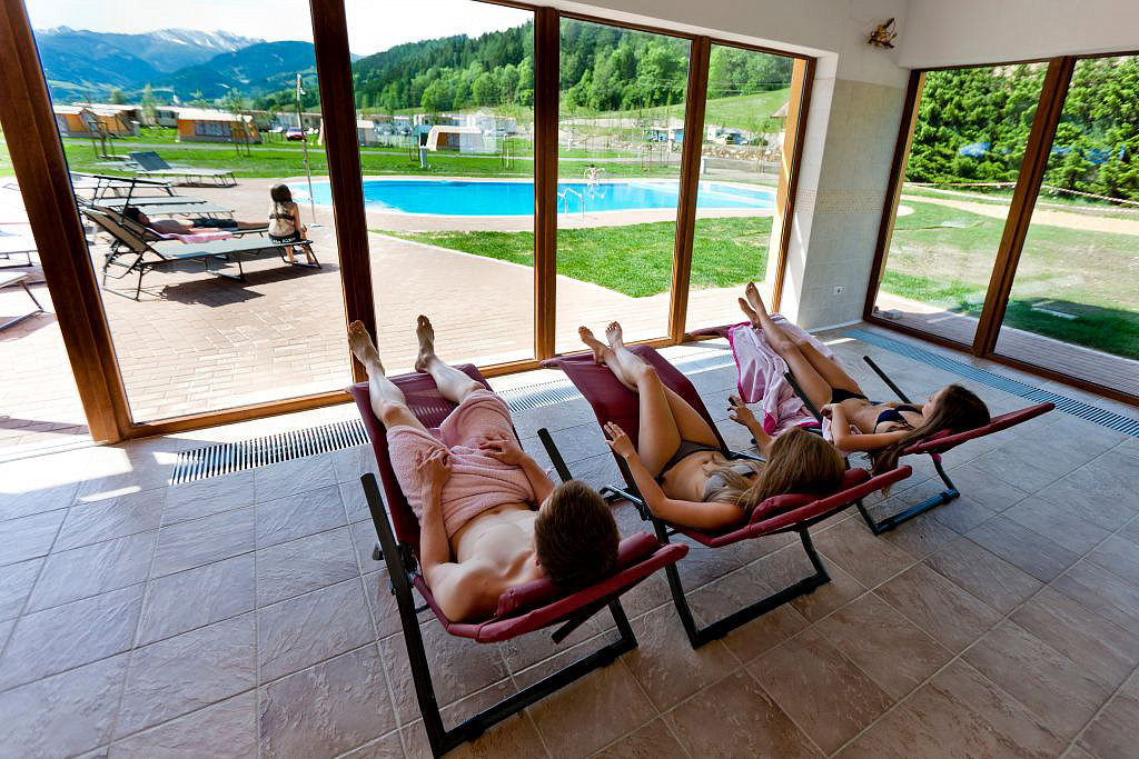 basen#, brodzik, sauna fińska#, biosauna#, kabina na podczerwień#, mini zoo, plac zabaw; z usług oznaczonych # mogą korzystać dzieci od 15 lat lub pod opieką osoby dorosłej