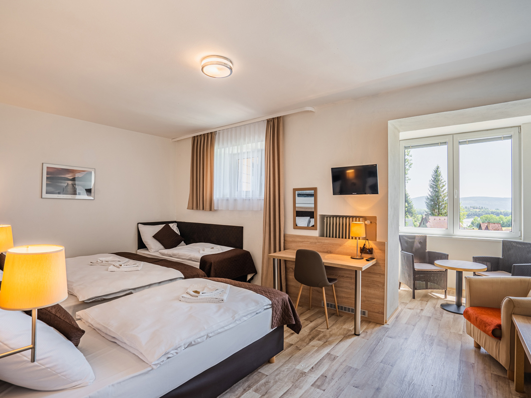 Standard 3 - 18 m² - pokój z łóżkiem małżeńśkim 1 łózkiem pojedyńczym, łazienka