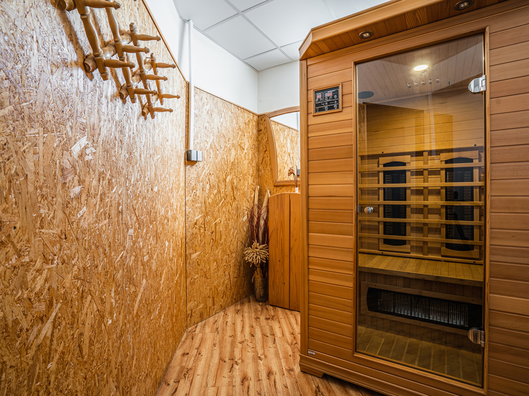 basen otwarty, sauna fińska*, fitness studio *, masaże*, piłkarzyki