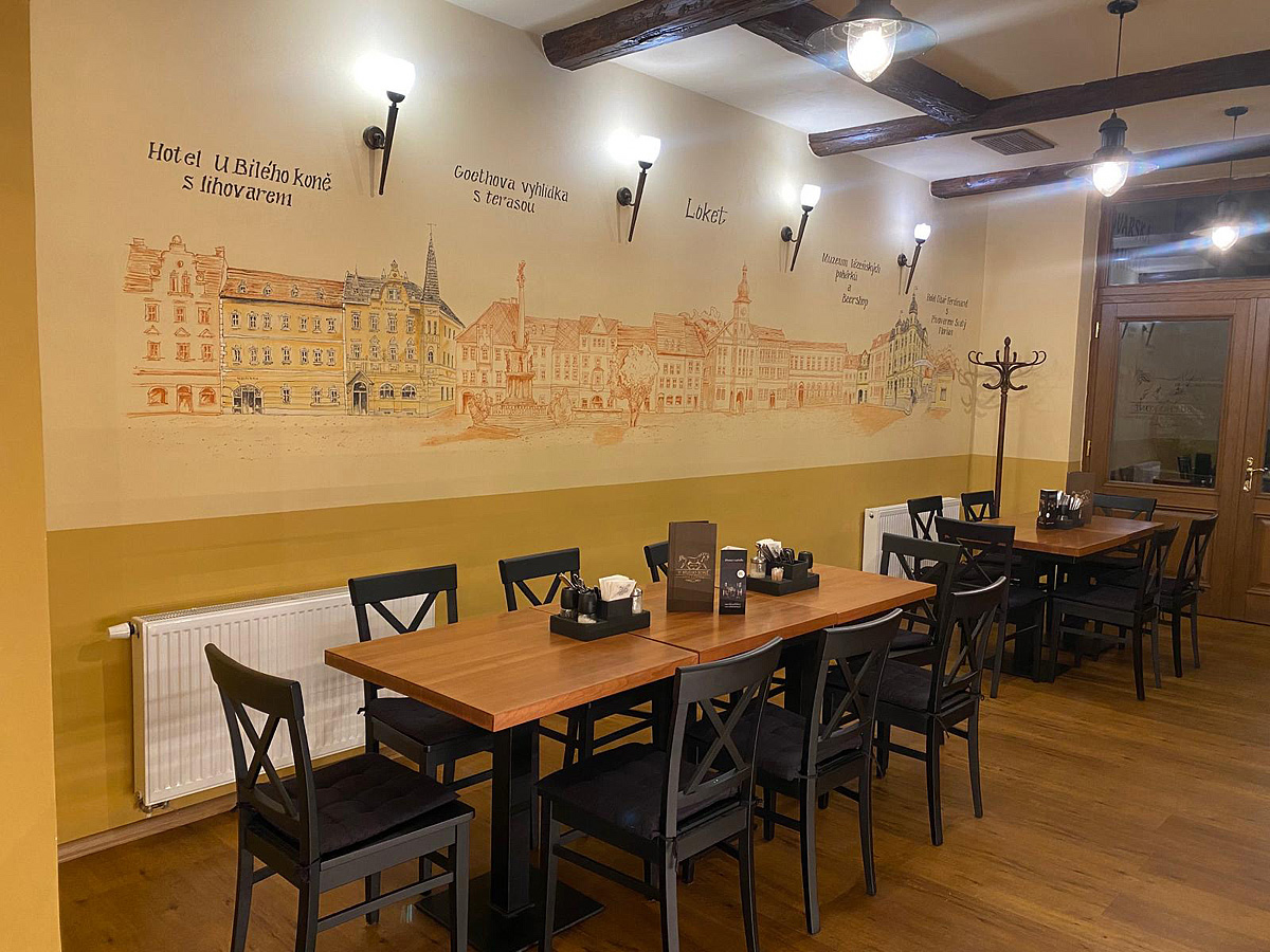 Kompleks hotelowy Loket składa się z trzech hoteli: Císař Ferdinand, St. Florián i U Bílého koně; zameldowanie odbywa się w recepcji hotelu Císař Ferdinand, gdzie serwowane jest również śniadanie; klienci korzystają ze wszystkich usług hotelu Císař Ferdinand