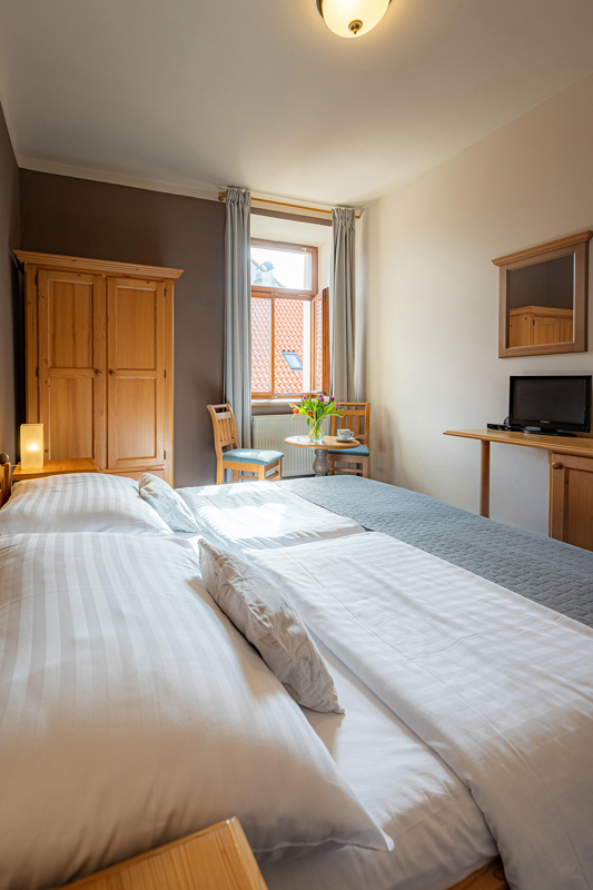 Standard 2/3 - pokój z łóżkiem małżeńskim lub 2 pojedynczymi łóżkami, z możliwością 1 dostawki w formie łóżka pojedynczego, łazienka