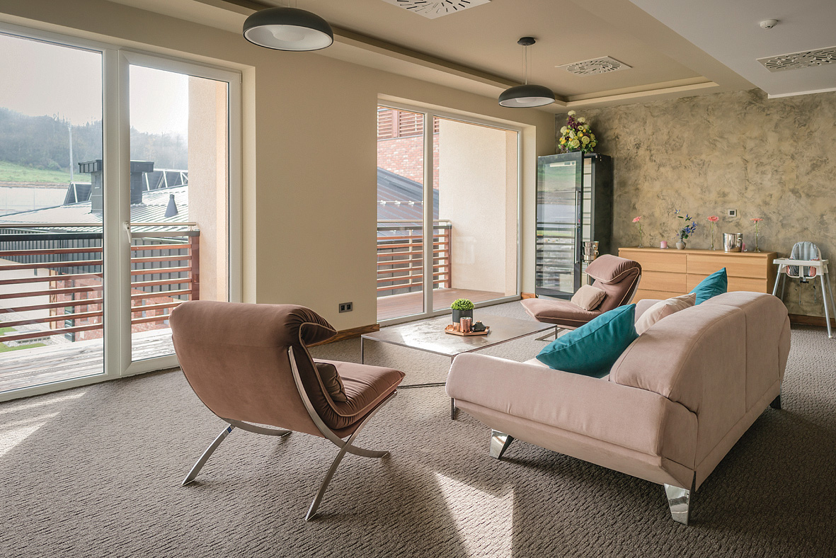 ośrodek składa się z głównego budynku hotelowego z recepcją, restauracją i wellness oraz aneksu apartamentowego Iňuščák, 50 m od budynku głównego