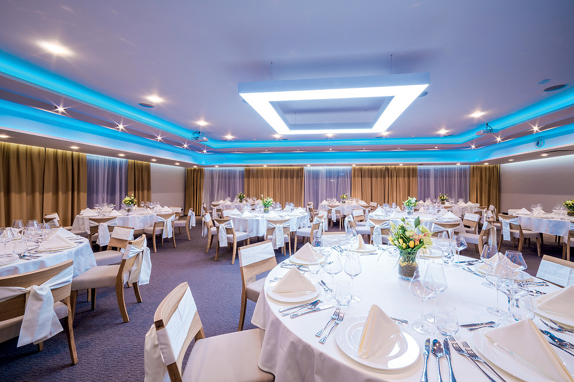 basen 15 x 6 m z brodzikiem dla dzieci, jacuzzi dla maksymalnie 6 osób, z przeciwprądem, sztucznym wodospadem (4 m) i leżakami, aerobik wodny*, sauna, łaźnia parowa, kącik relaksacyjny z leżakami, masaże *, usługi kosmetyczne*, zabiegi kosmetyczne *, krioterapia*, tlenoterapia*, siłownia z instruktorem*, ścianka wspinaczkowa 13,5 m z instruktorem*, bilard*, piłkarzyki*, wypożyczalnia* kijków do Nordic Walking, w pobliżu hala tenisowa*; wejście do Centrum Relaksu w godzinach 9:00 - 21:00, w ramach którego zapewnione są także: ręczniki, prześcieradła do sauny, woda, woda mineralna, soki* i kawa*