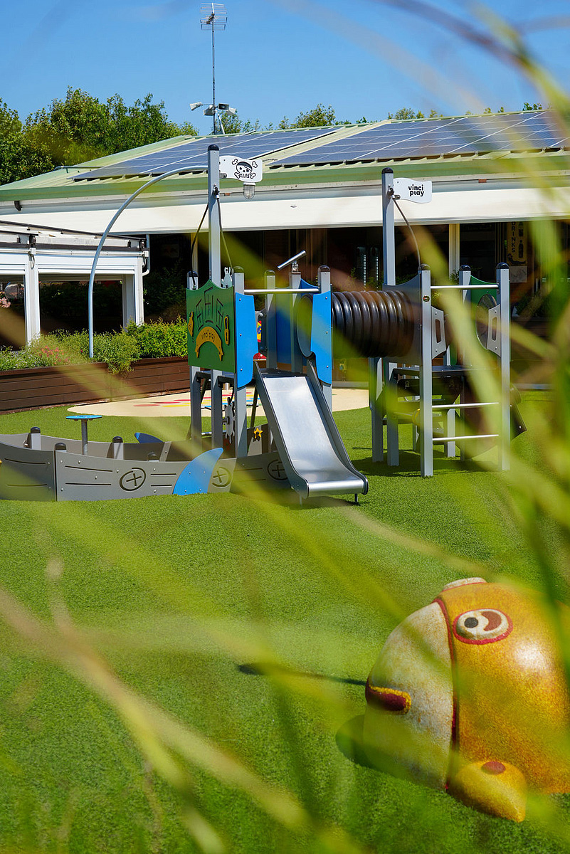 recepcja, bar, restauracja / pizzeria, lodziarnia, plac zabaw, program animacyjny (od połowy czerwca do końca sierpnia), pralka* i suszarka*, zmywarka*, minimarket, wydzielony parking