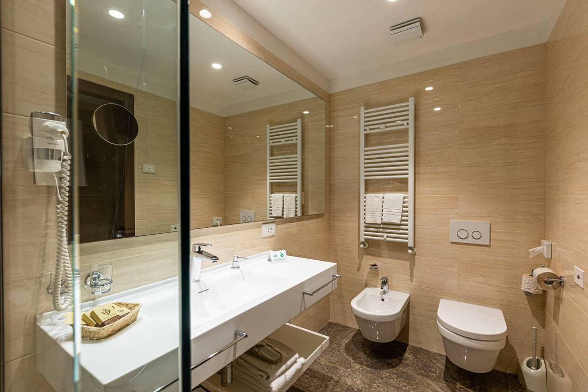 TV sat., klimatyzacja, telefon, sejf, suszarka do włosów, lodówka na napoje i czajnik elektryczny (tylko typologie Junior Suite 2/3/4), wi-fi