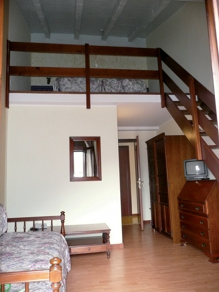 Standard 2/3 - pokój typu mezonet z łóżkiem małżeńskim na otwartym półpiętrze, łazienka z pryszniecem; 3. łóżko stałe