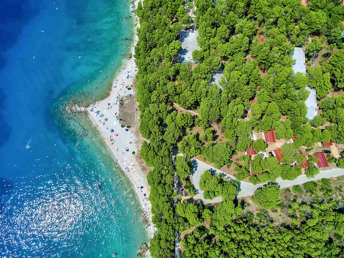 Baška Voda, centrum - 2 km, plaża/ kamienista i z płytami betonowymi i stopniowym zejściem do morza - 100 m