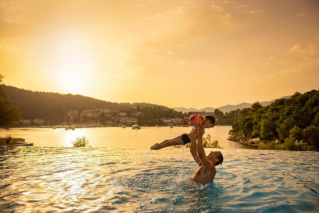 Nowoczesny kompleks apartamentów w stylu dalmatyńskim, otoczony śródziemnomorską zielenią, położony jest w spokojnej zatoce, niedaleko historycznego centrum Korčuli. Przestronne i w pełni wyposażone apartamenty są idealne dla rodzin z dziećmi, które cenią sobie niezależność. Goście mogą korzystać z basenów, restauracji i obiektów sportowych na terenie całego kompleksu Port 9. Doskonały wybór na aktywny wypoczynek i odkrywanie autentycznej wyspy Korčula.
