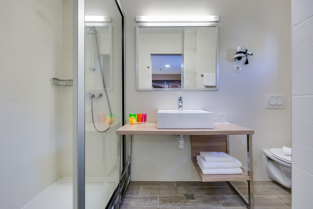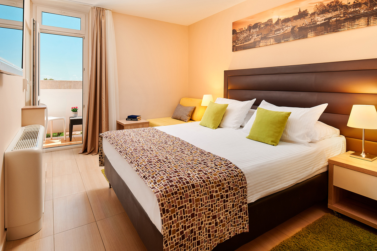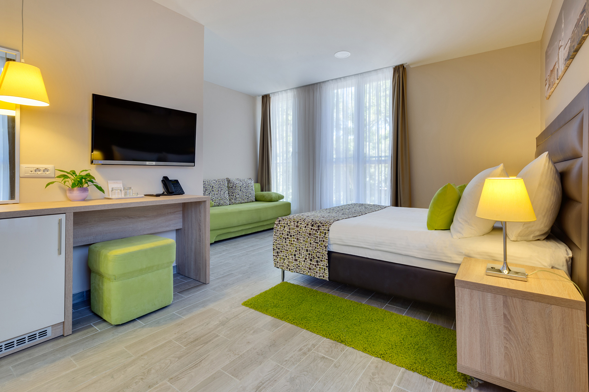 Premium 2+1 balkon - 22 m², pokój z łóżkiem małżeńskim lub dwoma osobnymi łóżkami z możliwością dostawki w postaci rozkładanej kanapy dla dziecka do nieukończonych 16 lat, łazienka z prysznicem, balkon