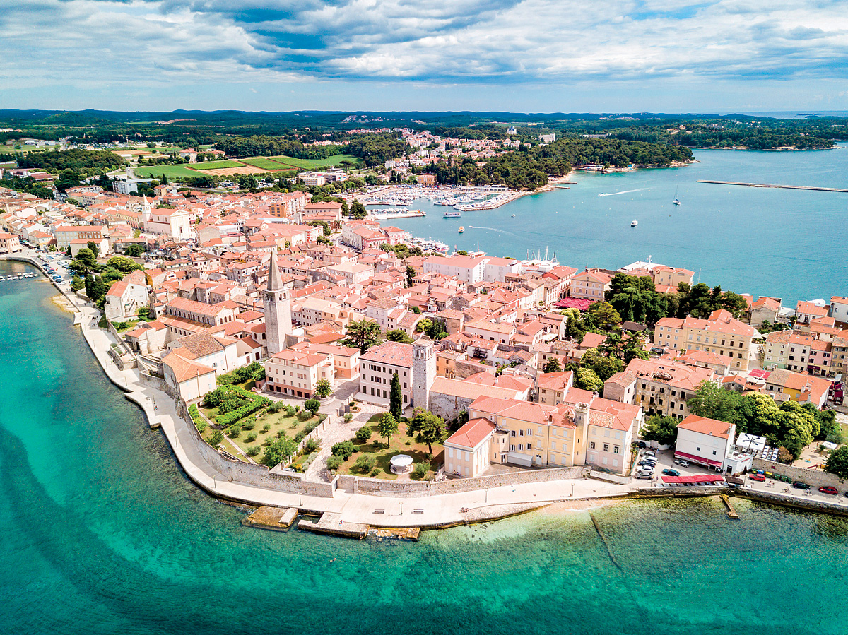 Poreč to tętniące życiem miasto z wieloma hotelami, rozrywką i bogatą ofertą sportową. Kompleks Bazyliki Eufrazjusza z pięknymi mozaikami (pod auspicjami UNESCO), wyróżnia się na tle tutejszych rzymskich zabytków m.in. pozostałości Forum i Świątyni Neptuna. Cenne zabytki pozostawili tu również Wenecjanie, którzy odcisnęli trwały ślad na zabudowie centrum miasta.