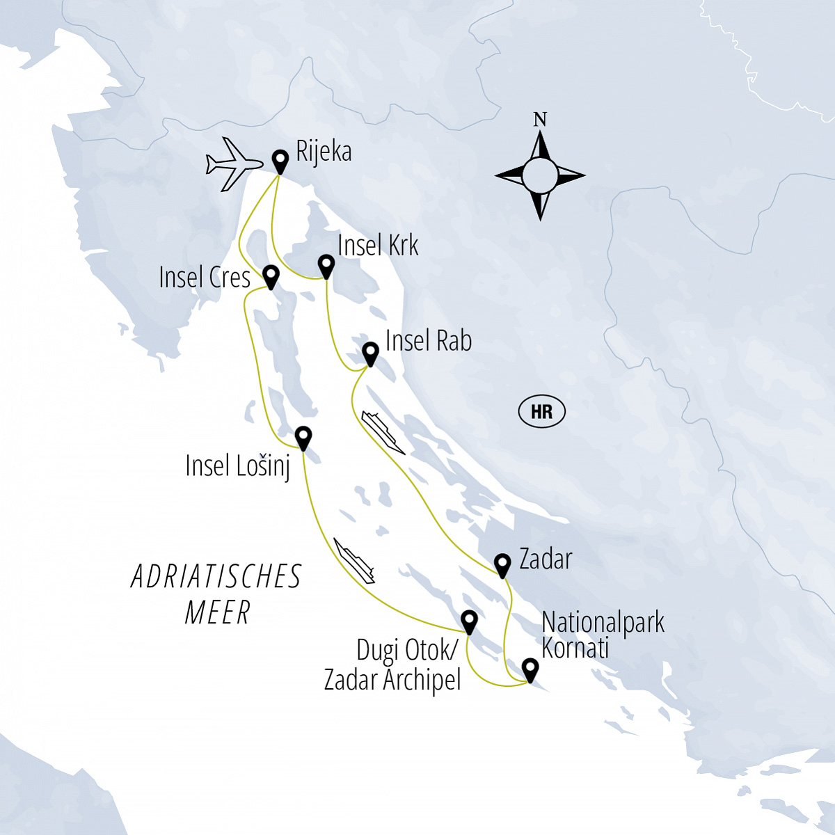 Odkryj klejnoty Kvarneru w siedem dni. W ramach programu będziesz żeglować po Parku Narodowym Kornati, pływać w pięknych zatokach Morza Adriatyckiego i zwiedzać zabytkowe miasta Rab i Zadar w towarzystwie przewodnika. Poznasz wyspy Krk, Rab, Lošinj i Cres. Wygodne kabiny, pyszne jedzenie i niezapomniana atmosfera na pokładzie – wszystko to czeka na Ciebie w tej wyjątkowej podróży.