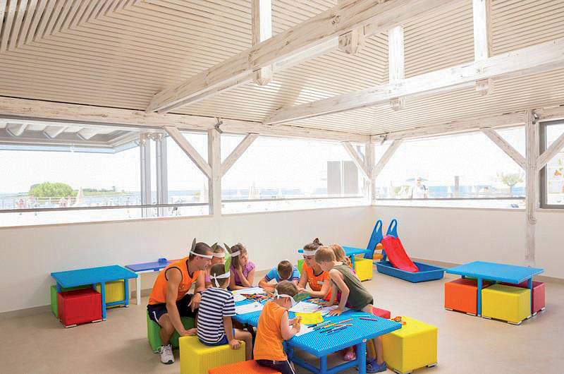 recepcja, główna restauracje i à la carte, restauracja Bonaca National Restaurant, Pizzeria Kantun, bary (bar przy recepcji Kapelica Fresh Corner, bar sportowy Sport Fresh Corner, bar przy basenie, bar na plaży Adria Snack FKK, bar Ice Corner), ogród z placem zabaw dla dzieci, mini klub w języku angielskim, programy animacyjne dla dzieci i dorosłych, wydzielony parking, kantor*, market*, bankomat, wi-fi.