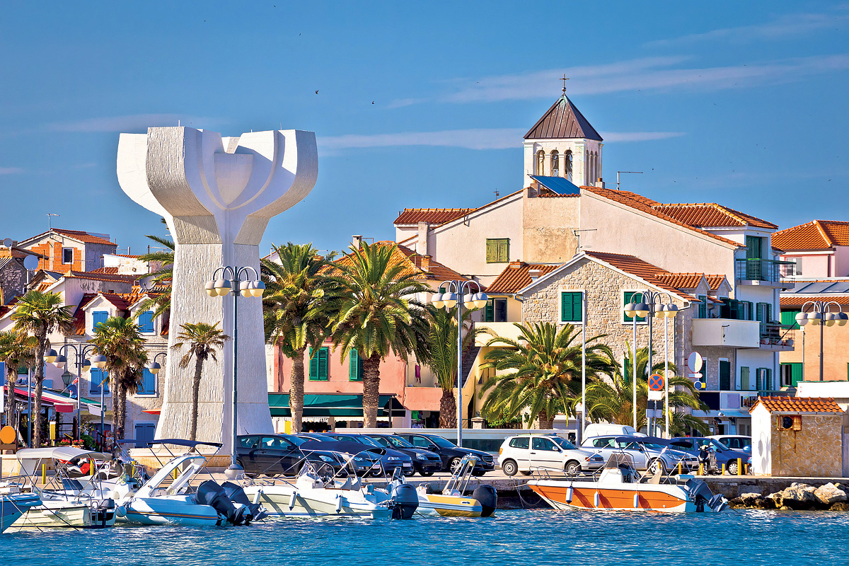 Trogir – (58 km od Vodic) uważany jest za najpiękniejsze miasto w środkowej Dalmacji. Jego historyczne centrum znajduje się na wyspie połączonej z lądem kamiennym mostem, dłuższy most łączy go z wyspą Čiovo. Na Starym Mieście znajdziesz 150 domów romańskich i kilkanaście kościołów. Miasto-muzeum znajduje się na liście światowego dziedzictwa UNESCO.