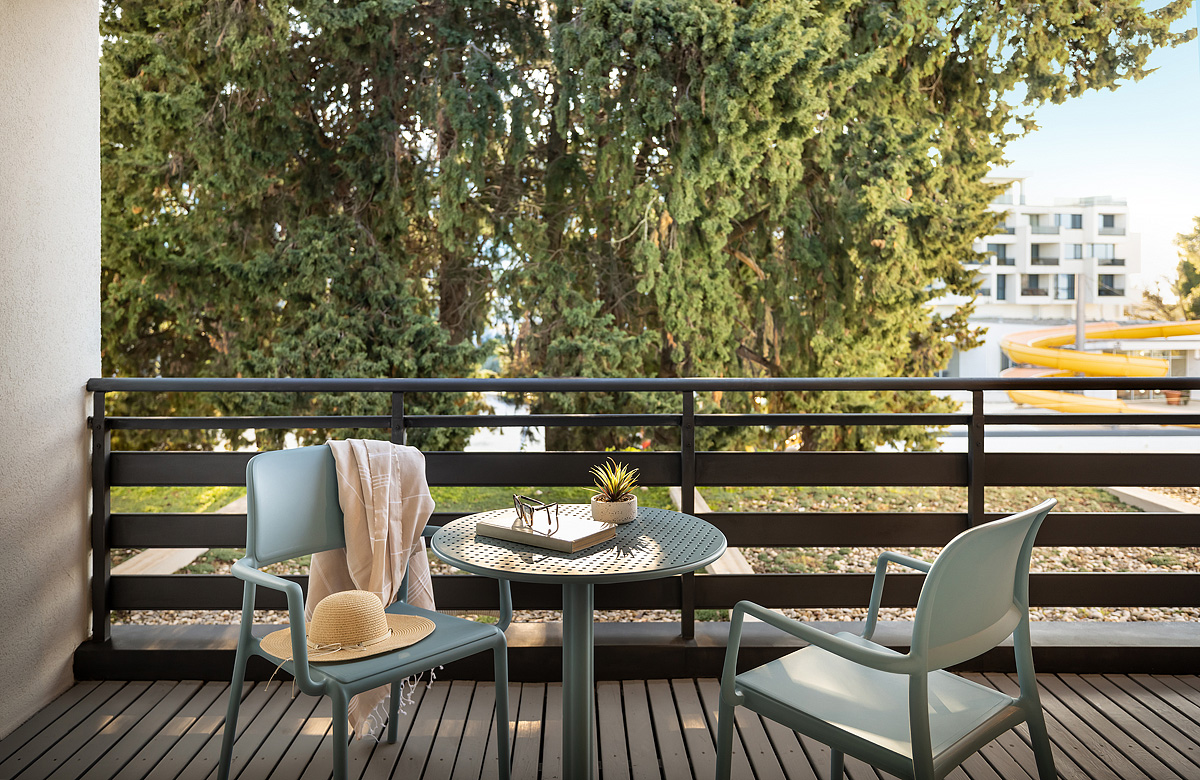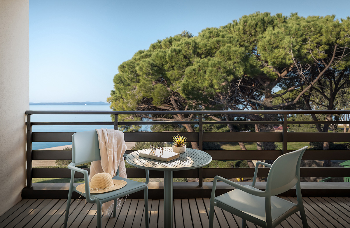 Superior Family 2+2 balkon M - do 33 m² - pokój z łóżkiem małżeńskim, pokój z rozkładaną sofą dla 2 dzieci do lat 18, łazienka, balkon z widokiem na morze