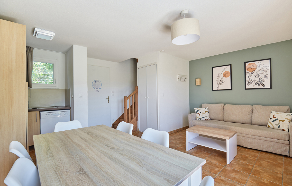 59 m² – pokój dzienny z aneksem kuchennym i rozkładana kanapa dla 2 osób (możliwy typ "szuflada"), 2 x sypialnia z łóżkiem małżeńskim, sypialnia z 2 pojedyńczymi łózkami, łazienka z prysznicem, 2x osobno WC, taras;