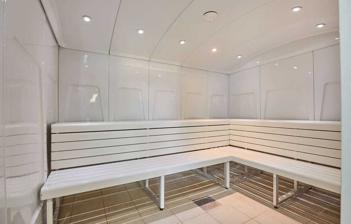 podgrzewany w połowie kryty basen (czynny od maja do września), sauna*, hammam*