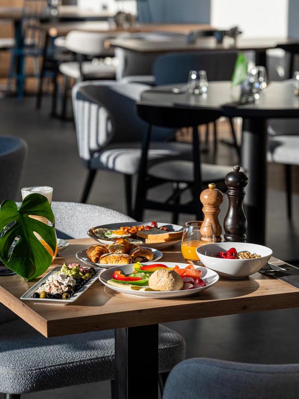 klimatyzacja, recepcja czynna całą dobę, lobby, restauracja dla gości hotelowych, bar, internet Wi-Fi, sale konferencyjne i hol, winda, taras zewnętrzny z miejscami do siedzenia i leżakami (tylko latem), kącik dla dzieci, mini boisko sportowe z atrakcjami (tylko latem), parking dla dzieci*, stacja ładowania samochodów elektrycznych*