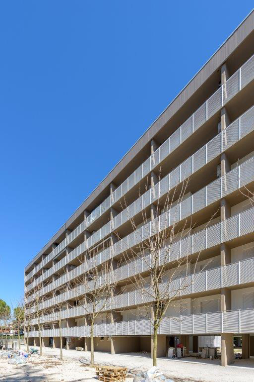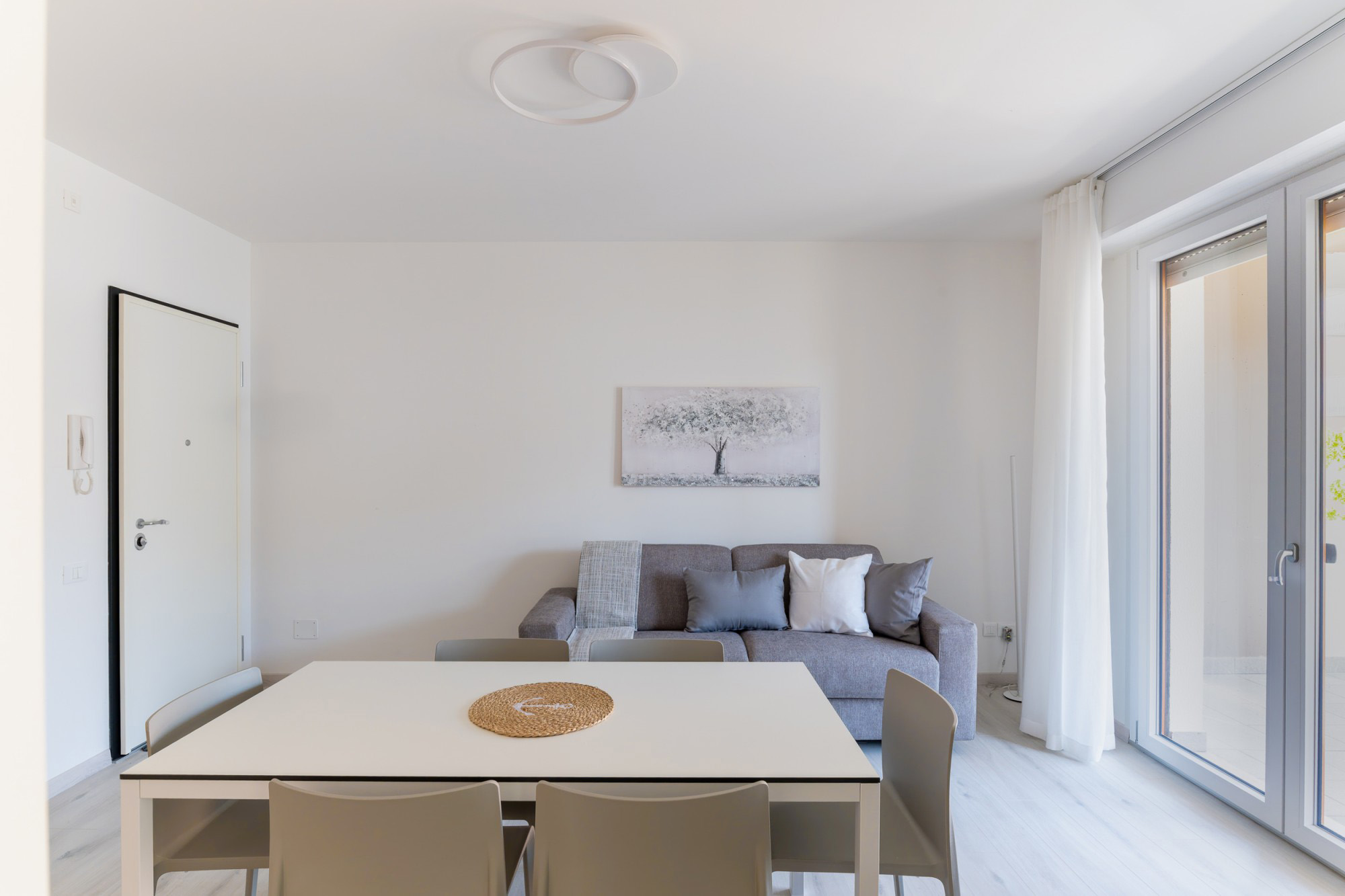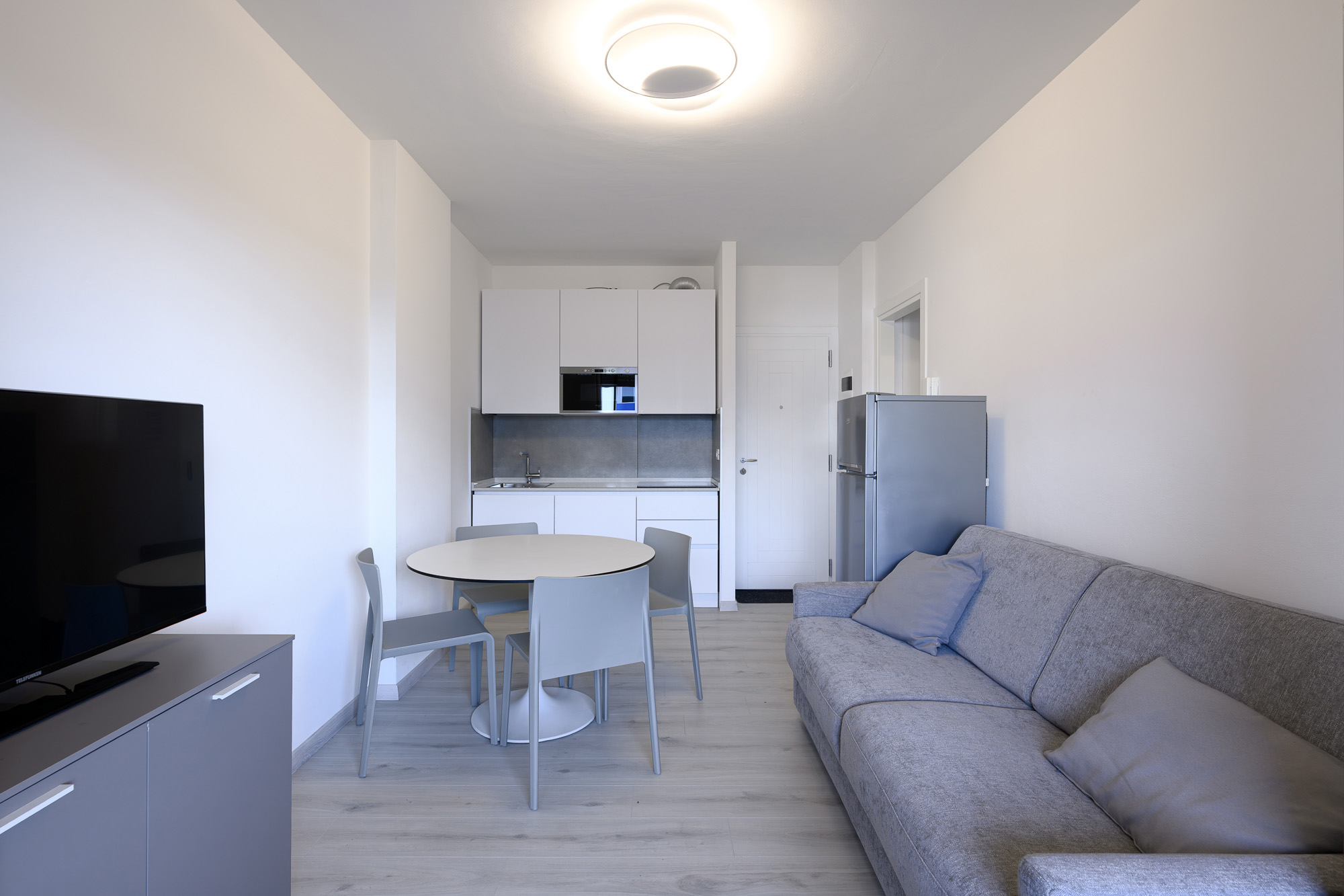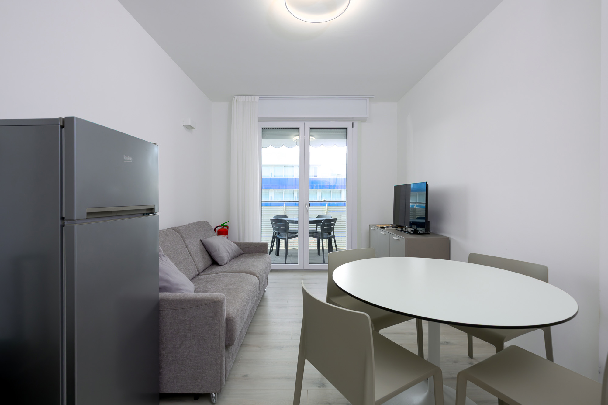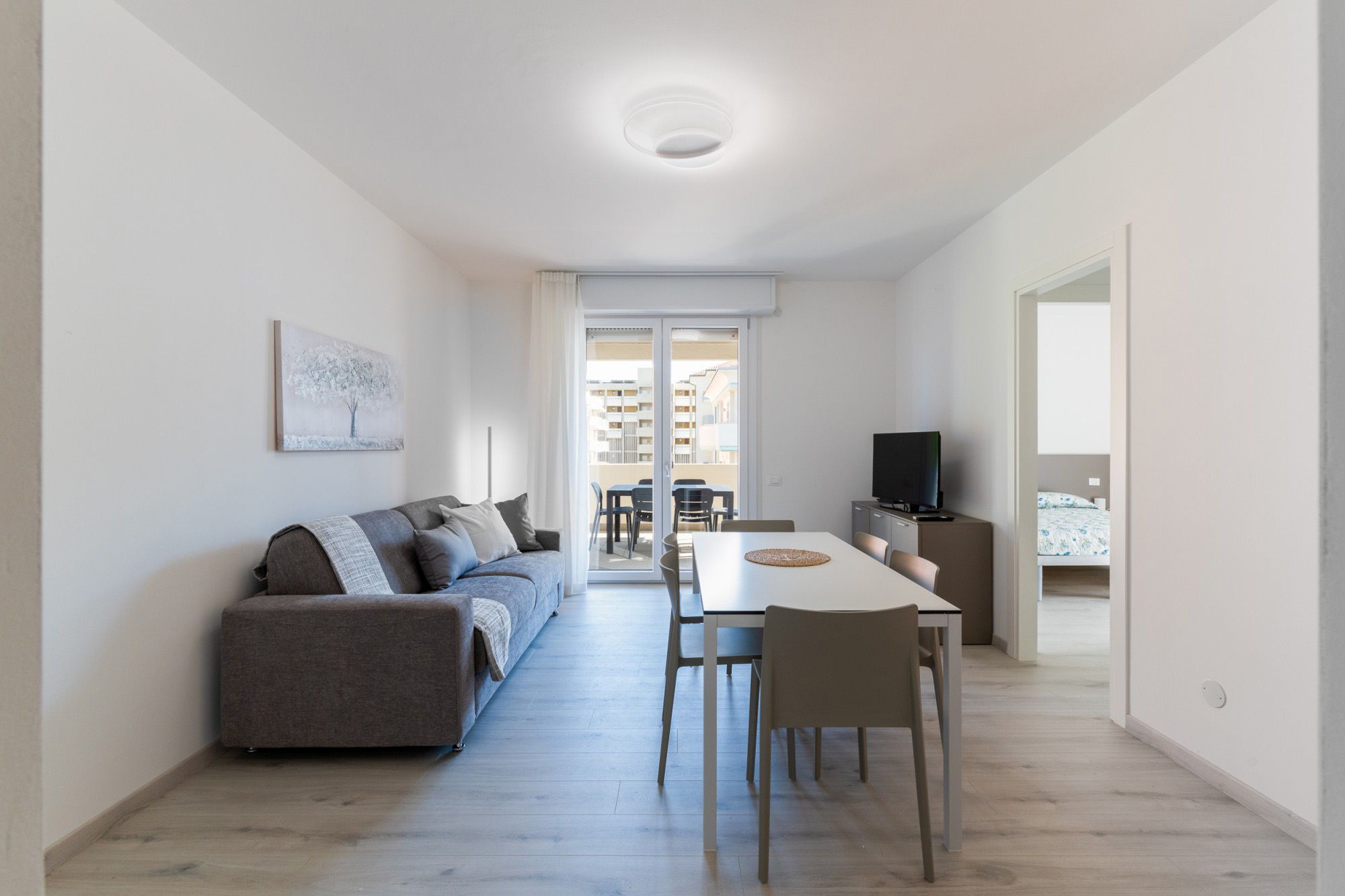 dwa wzajemnie połączone sześciopiętrowe domy apartamentowe w spokojnej części Lido dei Pini