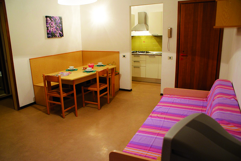 trilo 6/7 / trilo6+ - 45 do 50 m² - 1 sypialnia z łóżkiem małżeńskim, 1 sypialnia z 2 pojedynczymi łóżkami lub 1 pojedynczym łóżkiem i łóżkiem piętrowym, pokój dzienny z aneksem kuchennym i rozkładaną kanapą (możliwa typu szuflada) dla 2 osób, łazienka z prysznicem, balkon i taras