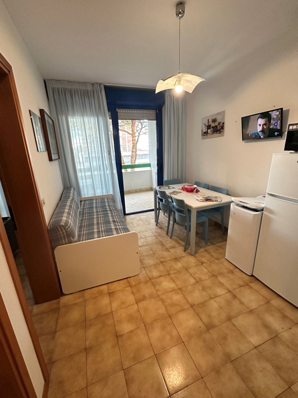 45 m² - 1 sypialnia z łóżkiem małżeńskim, 1 sypialnia z 2 łóżkami pojedynczymi, salon z aneksem kuchennym i rozkładaną sofą dla 2 osób, łazienka z prysznicem, balkon