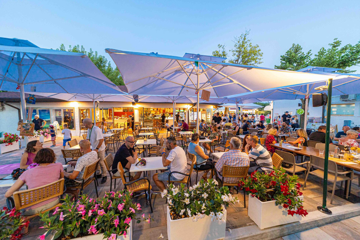 recepcja, bar i restauracja, 2 pizzerie, snack-bar, jogurtownia i lodziarnia, kącik dla dzieci, klub dla dzieci i programy animacyjne (ok. od końca maja do początku września), wydzielony parking, pralnia*, myjnia samochodowa *, minimarket, sklep z owocami, warzywami, pamiątkami, wyroby tytoniowe, teatr, sale gier, dyskoteka, pogotowie (w sezonie), fryzjer*, bankomat, wi-fi*, lokalna kolejka autokarowa