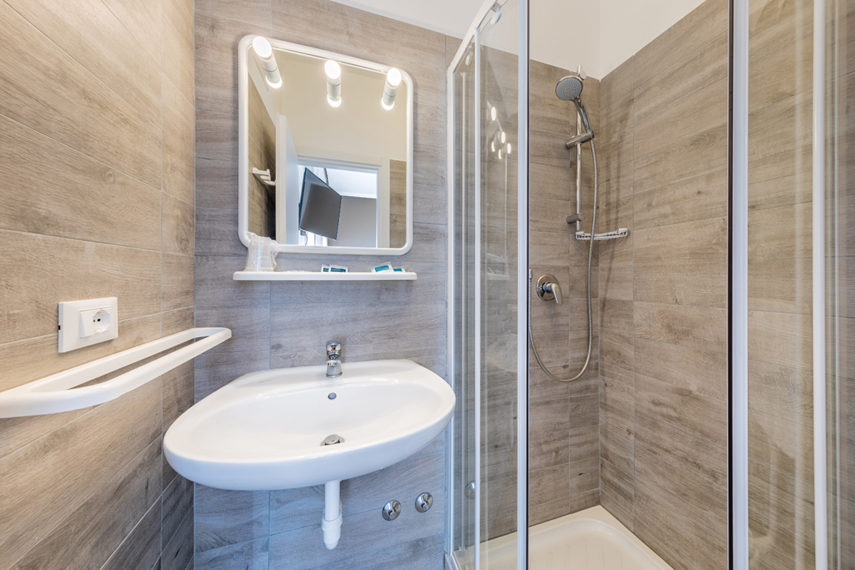 Standard 2/3/4 - 12 do 14m² - pokój z łożkiem małżeńskim, łazienka z prysznicem, balkon; możliwość 3 i 4 łóżka; pokoje czteroosobowe z łóżkami piętrowymi.