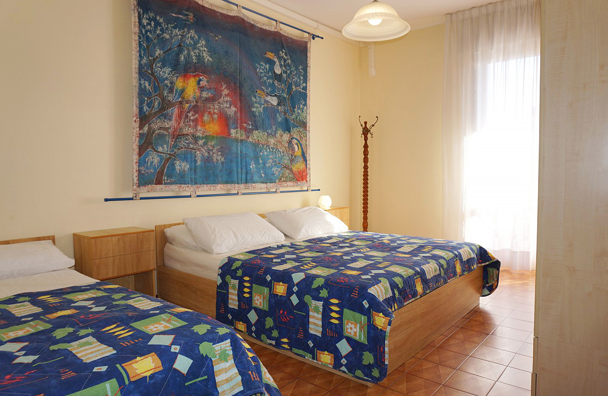 trilo 6/7 - 48 m² - 1 sypialnia z łóżkiem małżeńskim, 1 sypialnia z 3 pojedynczymi łóżkami lub 1 pojedynczym łóżkiem i łóżkiem piętrowym, pokój dzienny z aneksem kuchennym i rozkładaną kanapą (możliwy typ "szuflada") dla 2 osób, łazienka z prysznicem, zazwyczaj balkon