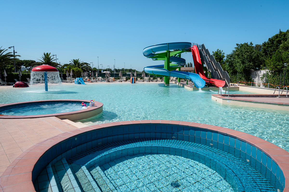 • Przestronny basen z częścią dla dzieci i zjeżdżalniami wodnymi
