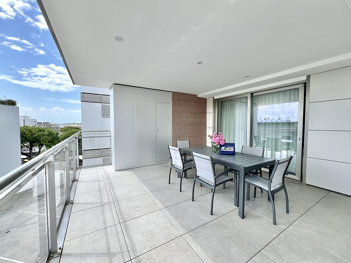 10. piętro - 1 sypialnia z łóżkiem małżeńskim, 1 sypialnia z 3 łóżkami, pokój dzienny z jadalnią i aneksem kuchennym oraz rozkładaną kanapą dla 2 osób, 2 łazienki z prysznicem, duży balkon z panoramicznym widokiem na morze i lagunę