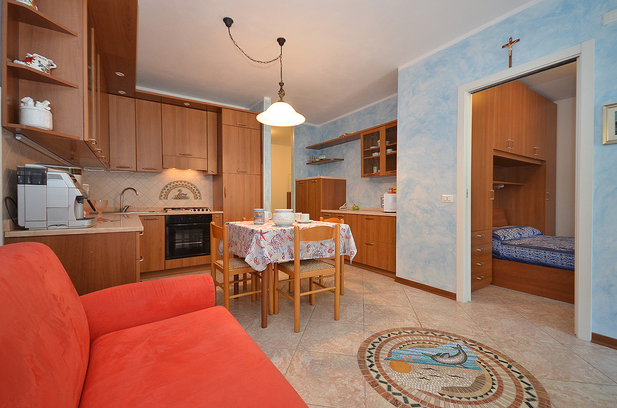 bilo 3/4/5 / bilo 3/4/5AC - 34 m² - 1 sypialnia z łóżkiem małżeńskim i ewentualnie jednym łóżkiem pojedynczym w sypialni lub pokoju dziennym, pokój dzienny z aneksem kuchennym i rozkładaną kanapą dla 2 osób, łazienka z prysznicem, balkon