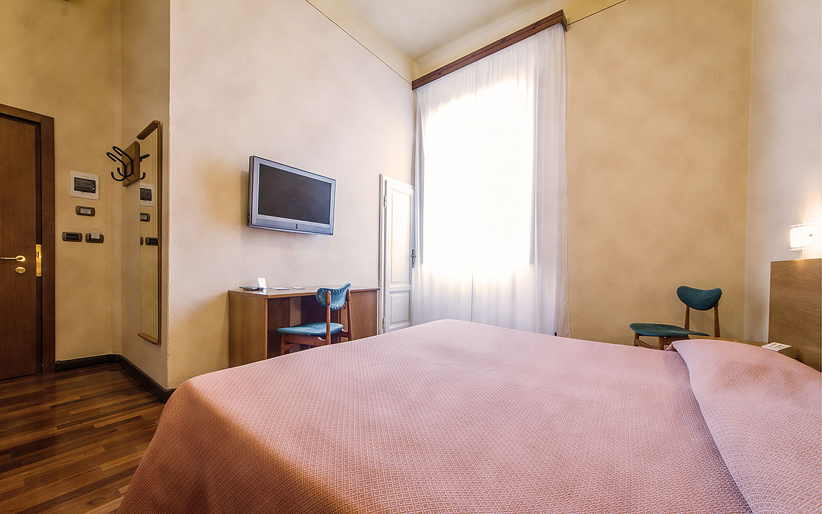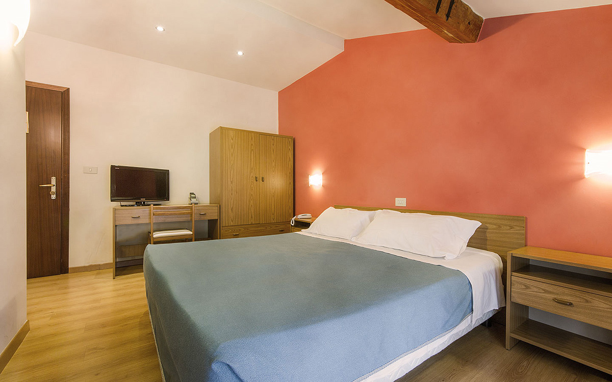 pokój z łóżkiem małżeńskim lub 2 łóżkami pojedynczymi, łazienką z prysznicem lub wanną; 3. łóżko w formie dostawki; balkon* (na zapytanie)
