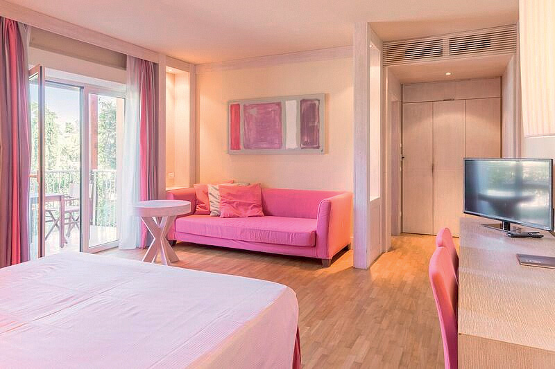 15 do 28 m² - pokój z łóżkiem małżeńskim lub 2 łóżkami oddzielnymi, łazienka z wanną, bez balkonu; 3. i 4. łóżko w formie łóżek stałych, dostawek lub rozkładanej kanapy; pokoje mieszczą się w dwupiętrowych willach w rozległym parku