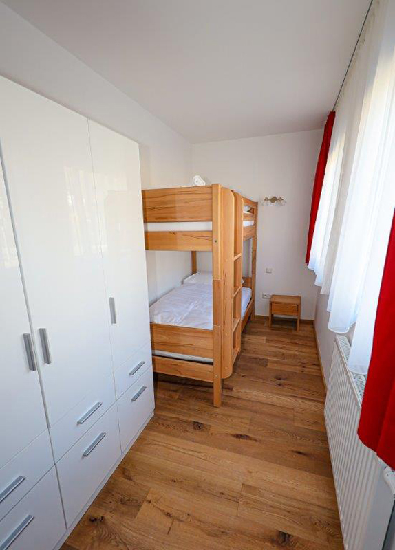 80 m² - 2 sypialnie z łóżkami małżeńskimi, salon z aneksem kuchennym i rozkładaną sofą dla 2 osób, 2 łazienki, taras; apartament znajduje się na 2 piętrze