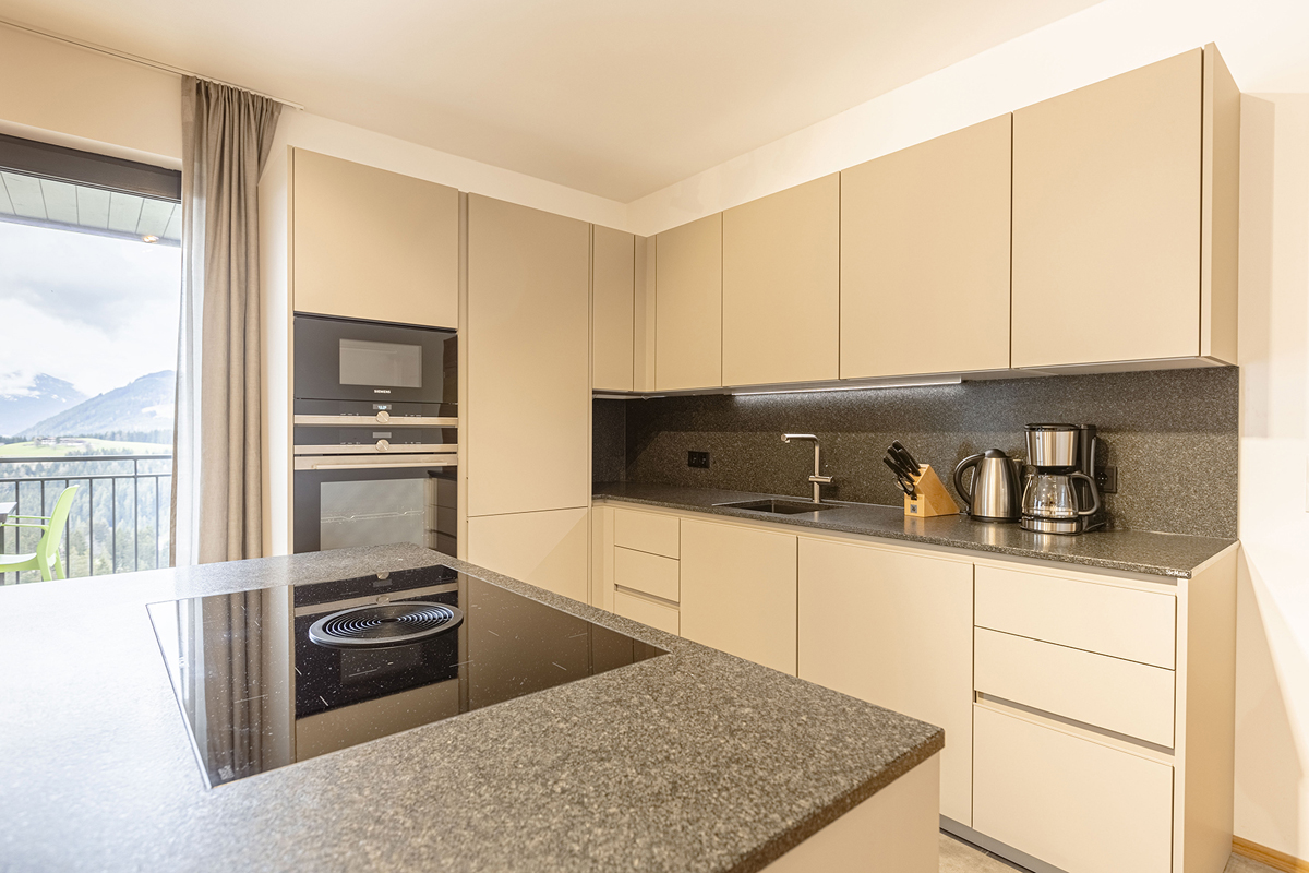 52 do 74 m² - 2 sypialnie z łóżkami podwójnymi, salon z aneksem kuchennym i rozkładaną sofą dla 2 osób, 2 łazienki, balkon lub taras