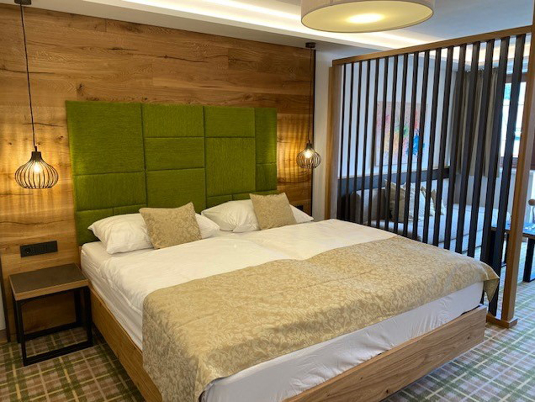 40 m² - pokój z łóżkiem małżeńskim i ewentualnie 2 rozkładanymi sofami dla maksymalnie 3 osób lub 1 rozkładaną sofą dla 2 osób i dostawką, łazienka z wanną lub prysznicem, balkon; pokoje znajdują się zawsze w nowej części hotelu, wybudowanej w 2016 roku i wyposażone są w nowocześniejsze meble