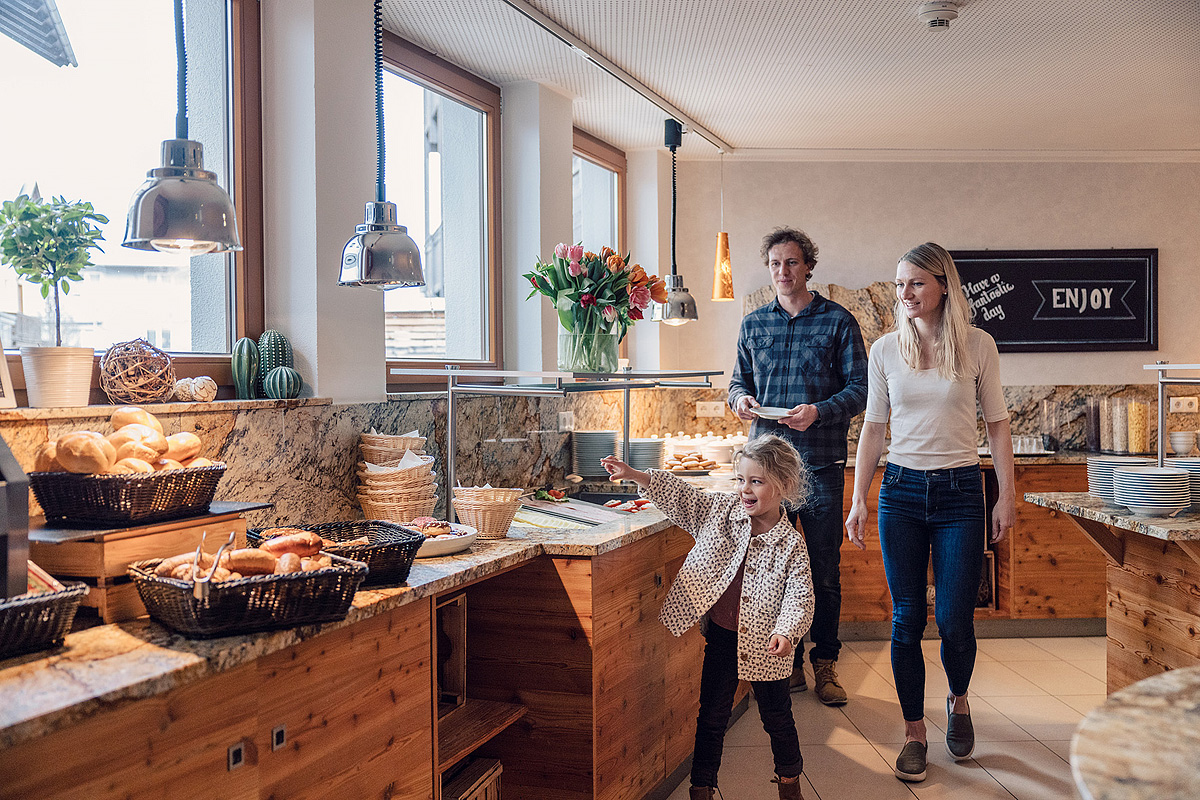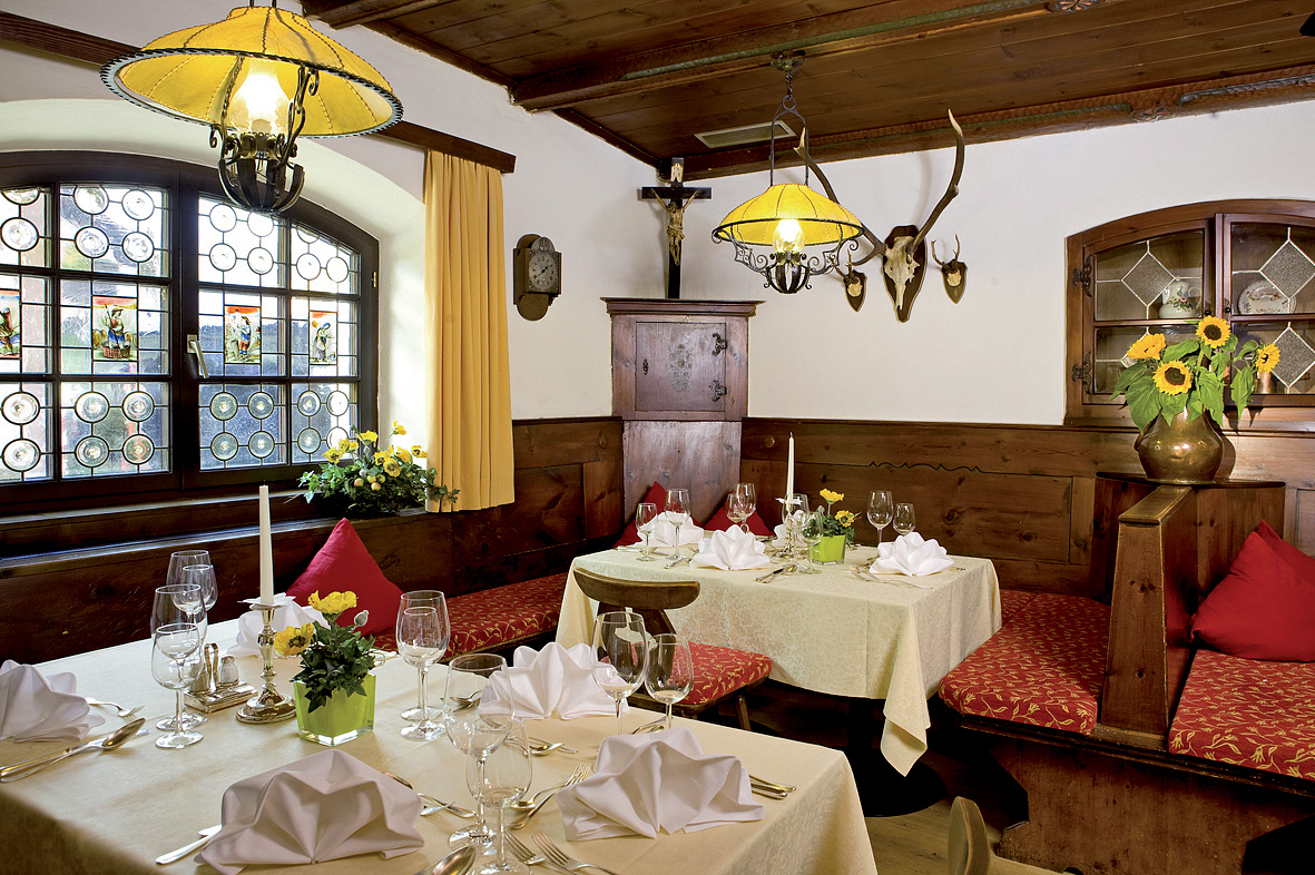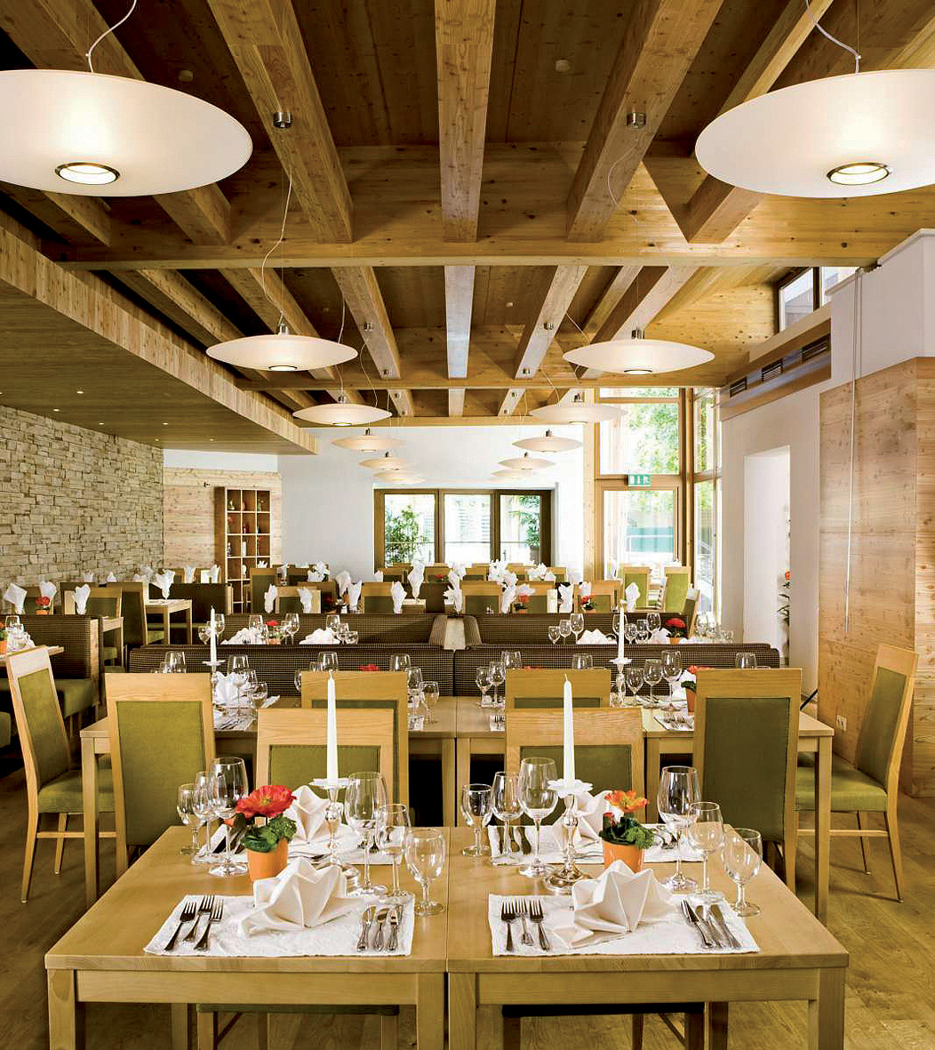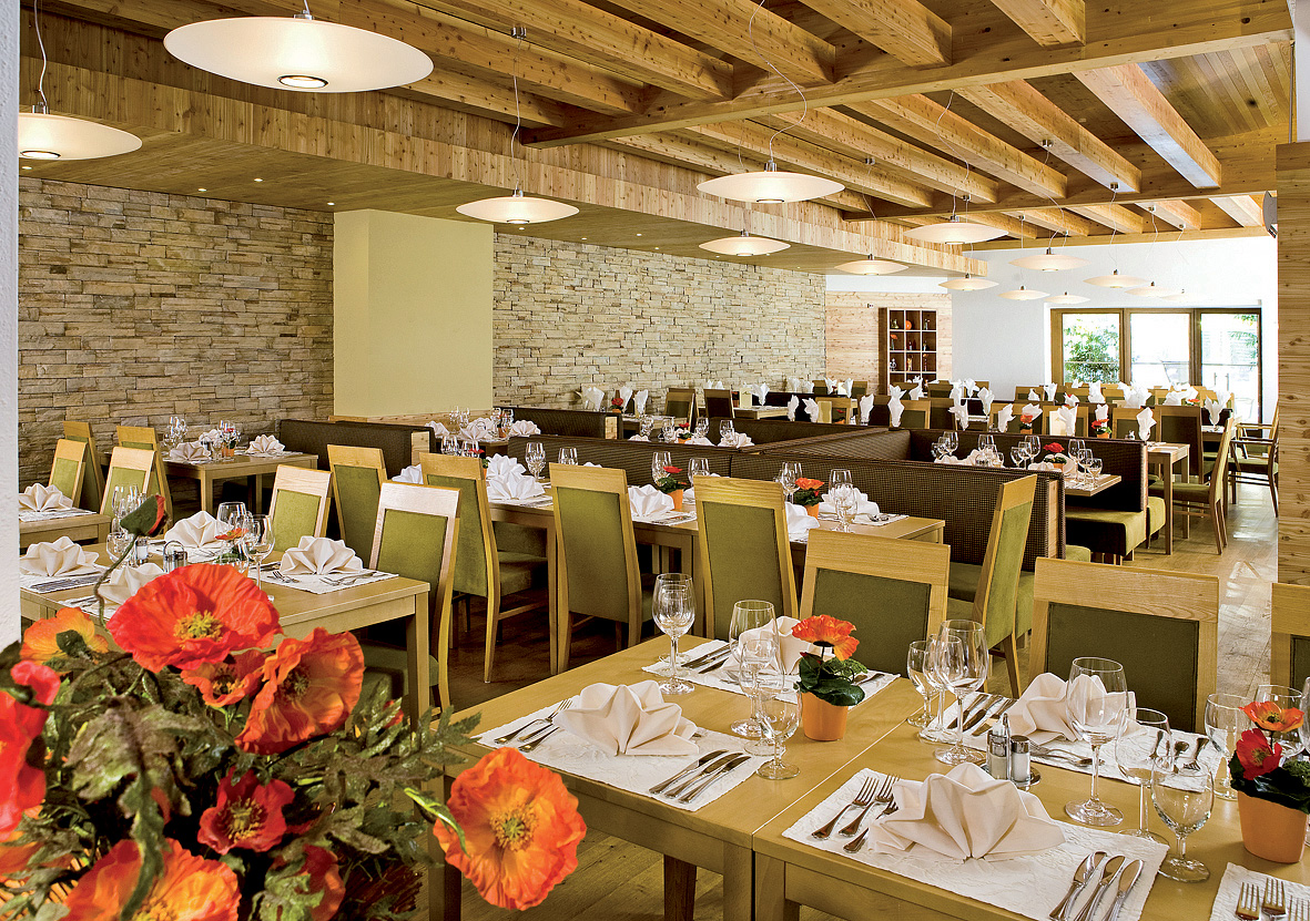 serwowane menu 3-daniowe z możliwością wyboru dania głównego z dodatkiem, przystawką lub zupą, sałatkami i zazwyczaj deserem w formie bufetu, napoje za opłatą; raz w tygodniu tematyczny bufet z tyrolską farmą