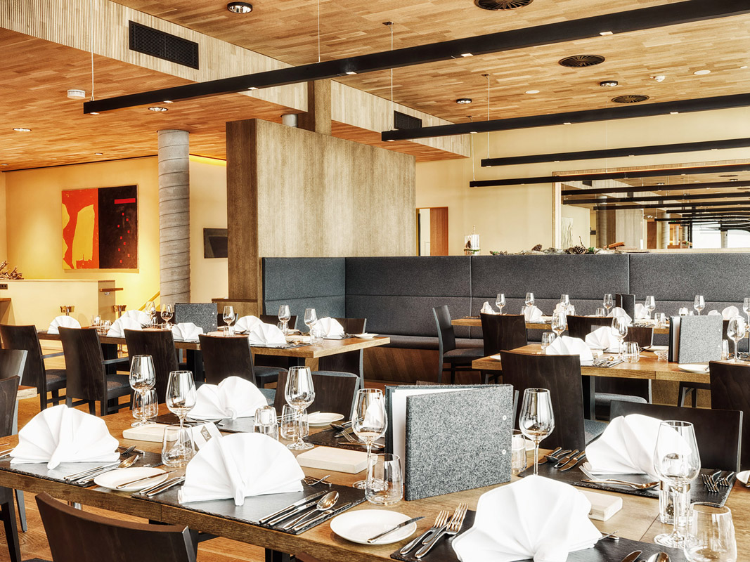 recepcja / duży hol, restauracja zarezerwowana dla gości hotelowych, stylowa restauracja, sala śniadaniowa, bar, duża piwnica z winami, salonik, sala konferencyjna, miniklub (dla dzieci od 3 do 10 lat; codziennie od 9:00 do 21:00, z wyjątkiem sobót), drink powitalny, Wi-Fi, przechowalnia sprzętu narciarskiego i butów narciarskich, przechowalnia bagażu, winda, zarezerwowane miejsce parkingowe, garaż (1 samochód / pokój), stacja ładowania samochodów elektrycznych*, sklep ze sprzętem sportowym, fryzjer*
