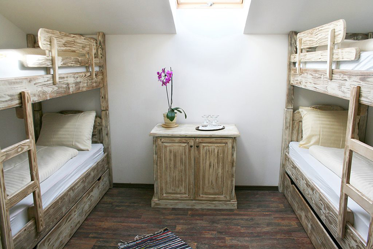 16-25 m² - pokój z 3 łóżkami piętrowymi dla maksymalnie 6 osób, łazienka z prysznicem lub wanną, zazwyczaj balkon lub taras