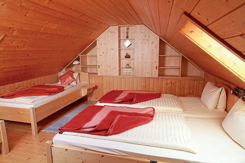 1. piętro apartamentu: sypialnia z łożkiem małżeńskim, pokój dzienny z aneksem kuchennym, łazienka, oddzielne WC, balkon;2. piętro apartament wejście po kręconych schodach: sypialnia z 4 pojedyńczymi łóżkami.