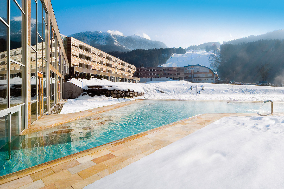 spa Acquapura o powierzchni 2400 m² - 76 m² basen z dyszami masującymi i przeciwprądem, 249 m² odkryty basen z podgrzewaną wodą, basen z lodowatą wodą, basen dla dzieci 15 m², jacuzzi, sauna (kilka rodzajów łącznie z rytuałami saunowymi), łaźnia parowa, termarium, kabina na podczerwień, wielofunkcyjny prysznic, horyzontalne solarium*, pokój relaksacyjny z leżakami i łóżkami wodnymi, prywatne suity relaksacyjne*, ścieżka Kneippa, masaże*, usługi kosmetyczne*, kuracje zdrowotne*, codzienne programy ćwiczeń (joga, aqua fitness itp.), ponadstandardowo wyposażona siłownia 100 m²