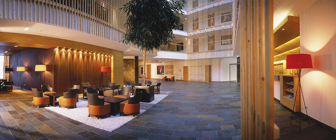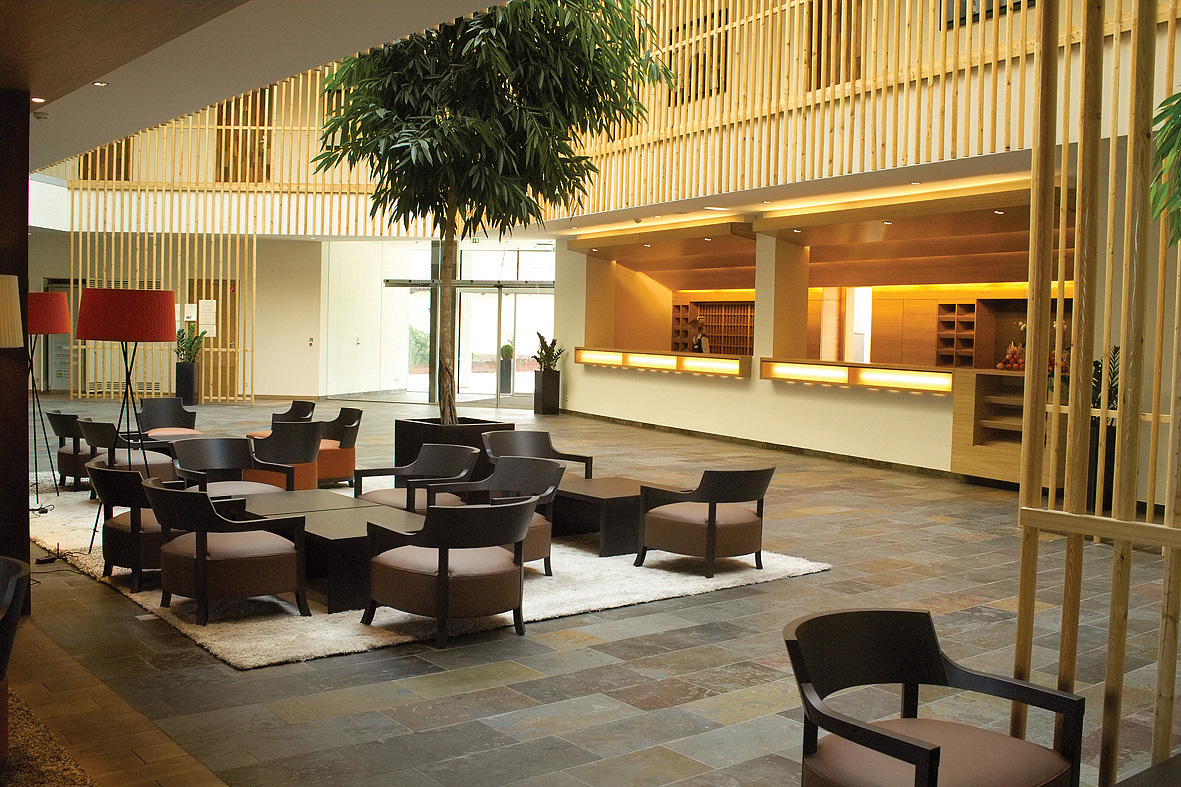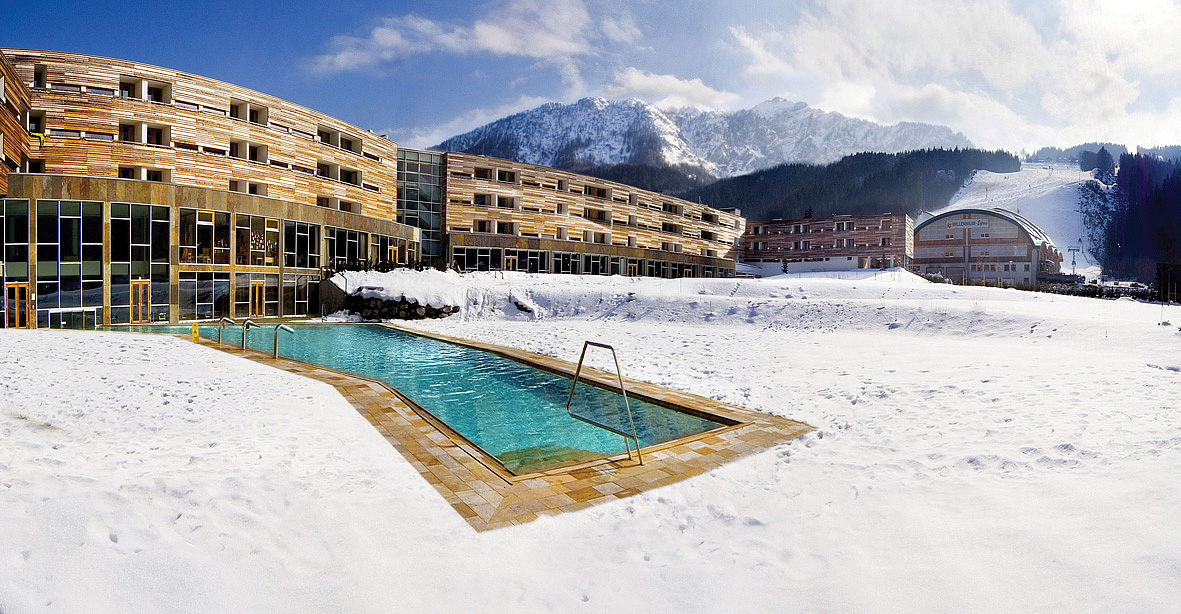 recepcja/lobby z kominkiem i barem, restauracja zarezerwowana dla gości hotelowych/ogród zimowy, pokój zabaw dla dzieci z programem animacyjnym (dla dzieci w wieku od 5 do 14 lat; 5 do 6 razy w tygodniu), 3 sale konferencyjne dla maksymalnie 320 osób, taras słoneczny z miejscami do siedzenia i leżakami, drink powitalny, łącze internetowe Wi-Fi, przechowalnia sprzętu narciarskiego i butów narciarskich, 3 windy, zarezerwowany parking, miejsca parkingowe w garażu*, wypożyczalnia sprzętu narciarskiego i snowboardowego