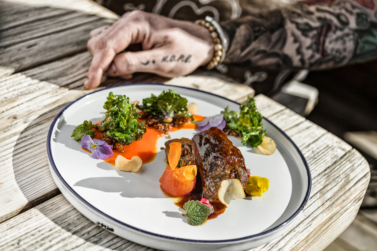 w formie serwowanego menu gourmet z wyborem dań głównych z dodatkiem, przystawek, zup, sałatek i deserów, napoje za opłatą