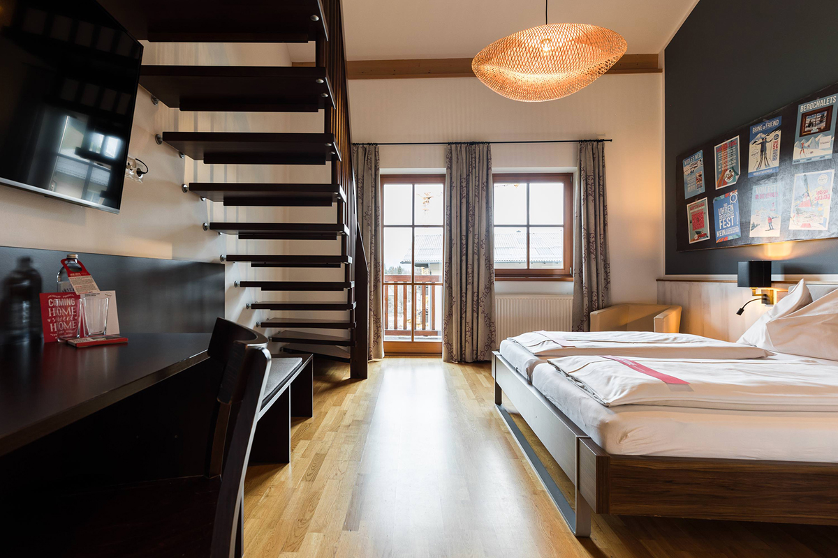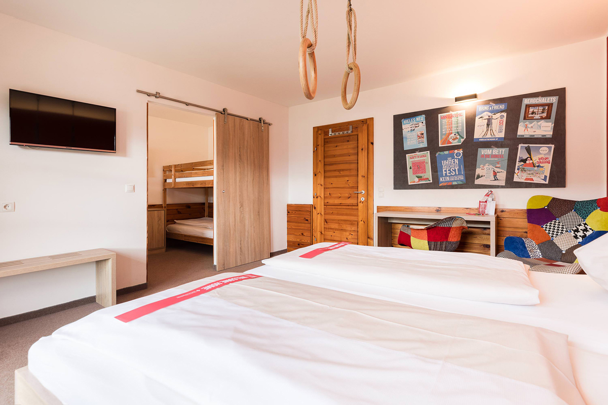 20 do 32 m² - pokój z łóżkiem małżeńskim i ew. 1 łóżkiem pojedynczym lub rozkładaną kanapą łącznie dla 1 lub 2 dzieci do nieukończonych 18 lat, łazienka z prysznicem lub wanną, rzadko balkon; pokoje są zawsze w budynku bocznym