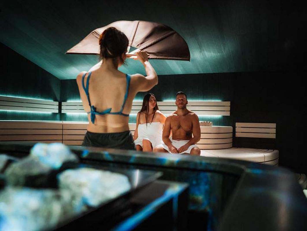 basen 13 x 6 m z jacuzzi, zewnętrzny podgrzewany basen 78 m², sauna fińska#, 3x sauna#, 2x sauna parowa#, solarium poziome*#, kącik relaksacyjny z leżakami, ścieżka Kneippa, siłownia, masaże*, zabiegi spa*, tenis stołowy, piłkarzyki*, bilard* ; usługi oznaczone # znajdują się w świecie saun „Sauna village Kamillen” i są dostępne dla dzieci od 16 lat