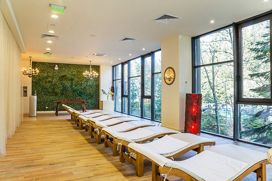 basen panoramiczny 25 x 12 m z leżakami, jacuzzi, świat sauny: sauna fińska, łaźnia parowa, kriokomora, łaźnia turecka, pokój relaksacyjny, masaże*, usługi kosmetyczne i pielęgnacyjne*, siłownia, tenis stołowy*, bilard*, gry video*; wstęp do świata sauny od 16 lat