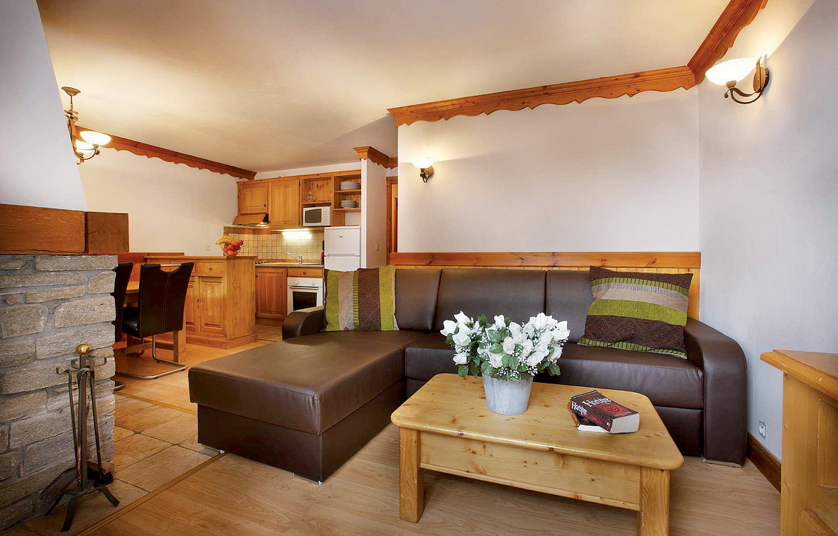 90 m² - 4 sypialnie z łóżkiem małżeńskim lub 2 pojedynczymi łóżkami, 1 sypialnia z łóżkiem małżeńskim lub 2 pojedynczymi łóżkami lub łóżkiem piętrowym, pokój dzienny z kominkiem i aneksem kuchennym, 3x lub 4x łazienka z prysznicem lub wanną (2x bez WC), zwykle balkon; niektóre apartamenty są dwupoziomowe.