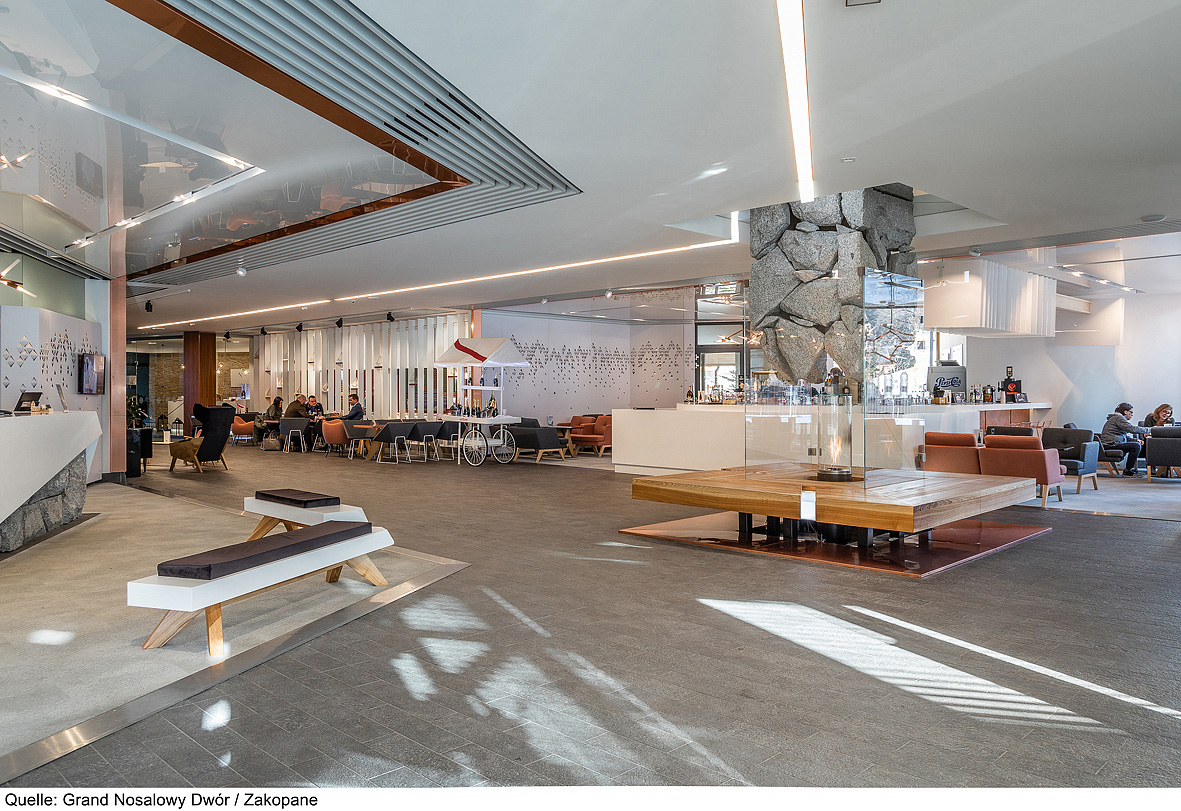 recepcja / duży hol z miejscami do siedzenia, Wi-Fi, restauracja zarezerwowana dla gości hotelowych, restauracja a'la carte, bar, kawiarnia, sale konferencyjne, taras słoneczny z miejscami do siedzenia, pokój zabaw dla dzieci, plac zabaw dla dzieci, przechowalnia bagażu, przechowalnia sprzętu narciarskiego, winda, zarezerwowane miejsce parkingowe*, garaż*