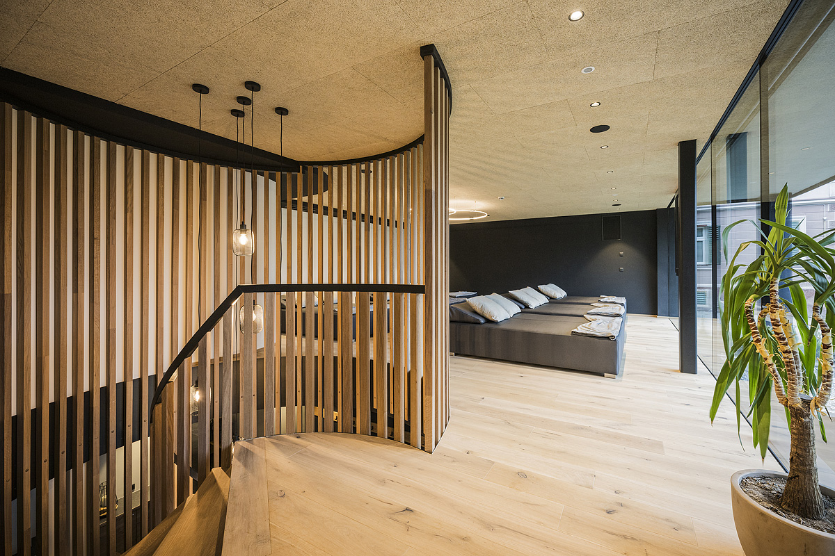 65 m² – pokój dzienny z aneksem kuchennym, łóżko małżeńskie i rozkładana kanapa dla 2 osób, łazienka z wanną, prywatna sauna, 2x balkon